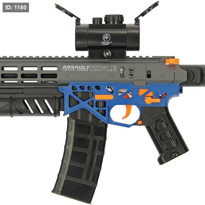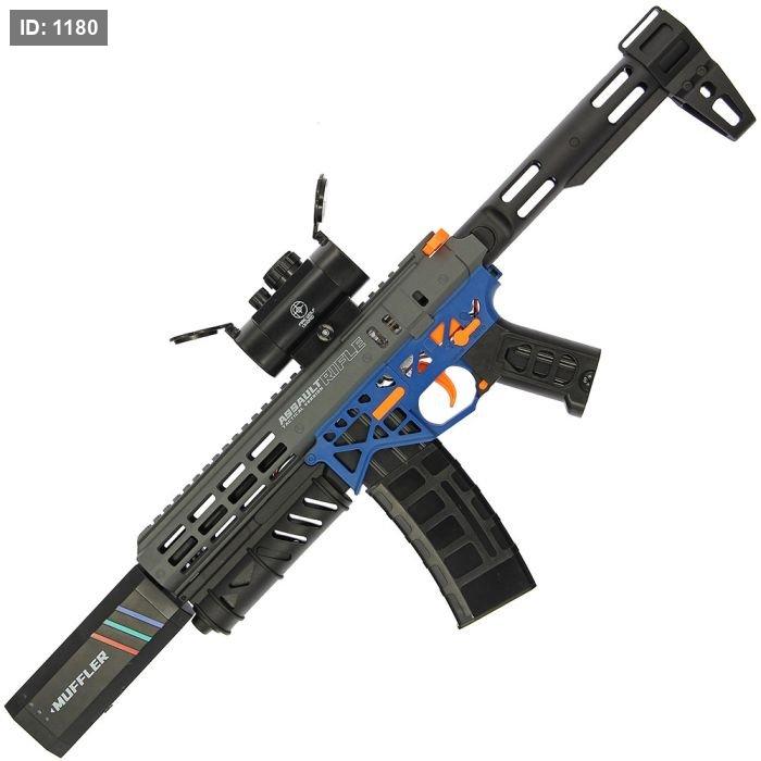 كبندقية ألعاب من نوع MK6 Gel Blaster (قاذف كرات الجيل)، وهي بندقية هجومية مصممة للألعاب الخارجية والترفيه.