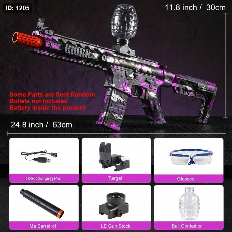 آلية العمل: يعمل بالكهرباء (بطارية قابلة للشحن) ويطلق طلقات "الأوربيز" أو كرات الجل المائية التي تنفجر عند الاصطدام.