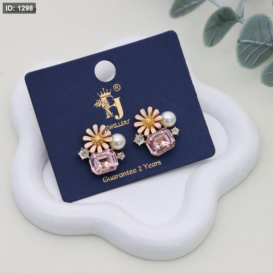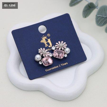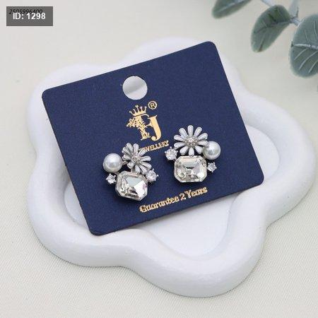 أقراط أذن بتصميم أزهار ولؤلؤ وكريستال