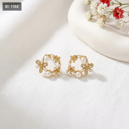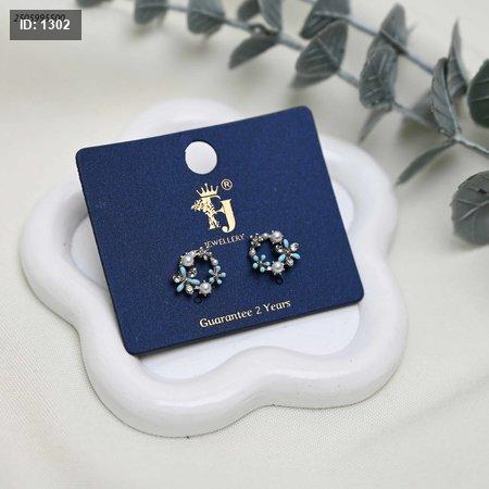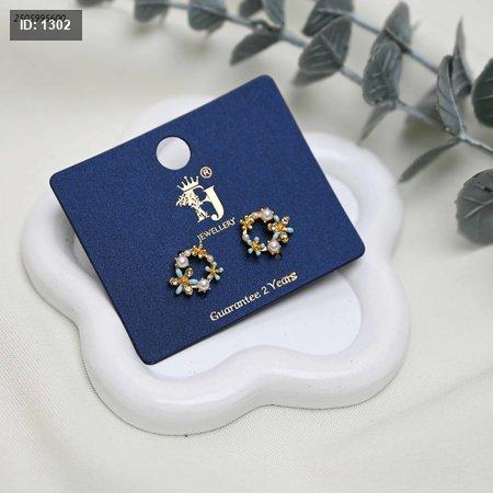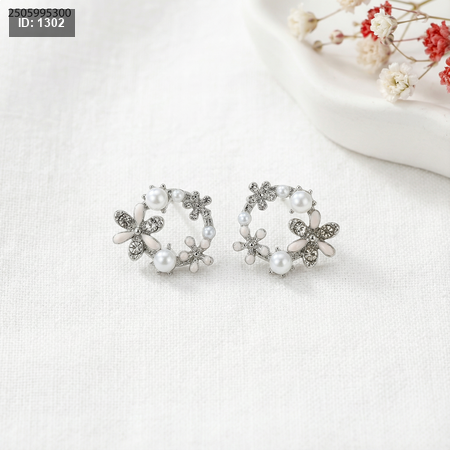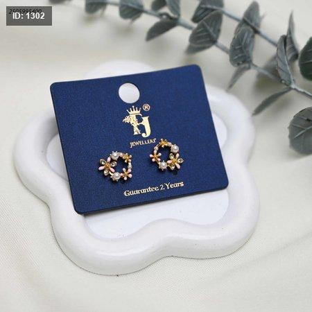 أقراط أذن بتصميم زهور مرصعة باللؤلؤ والزركون