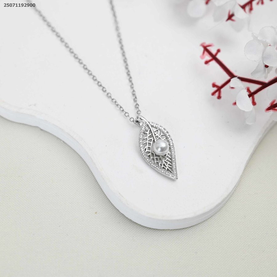 سنسال شكل ورقة اطارها زركون و في وسطها حبة لولو