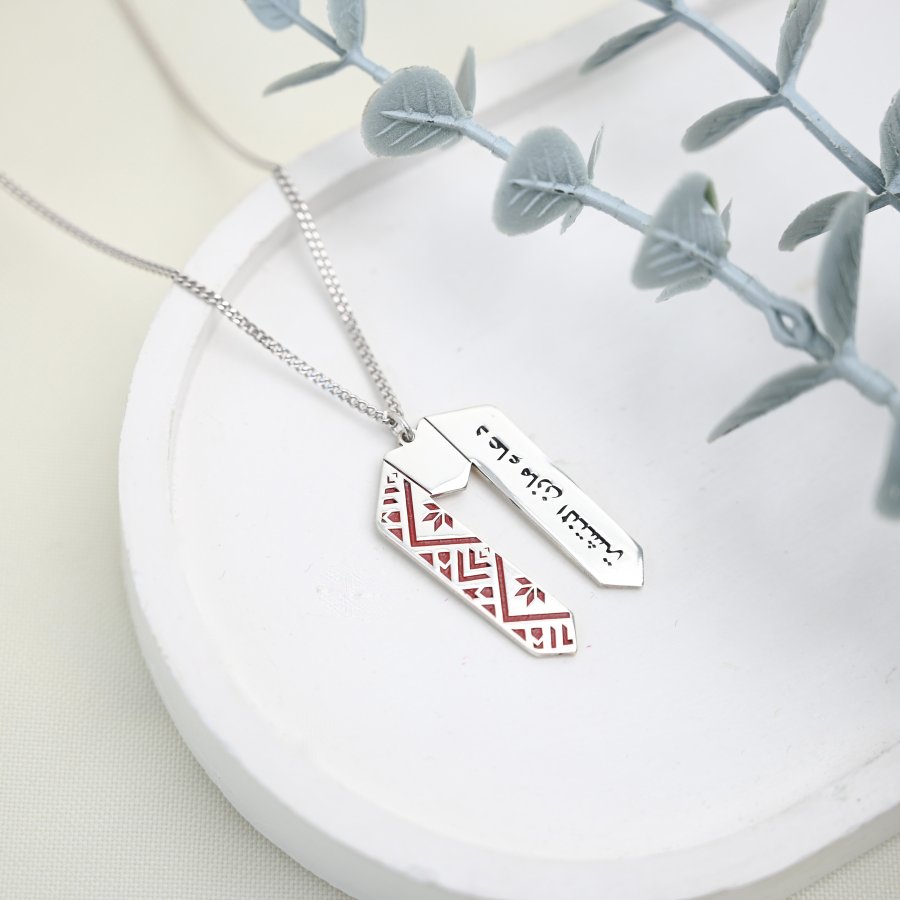 سنسال فضة 925 تفصيل شكل وشاح نقش كوفية مع الاسم