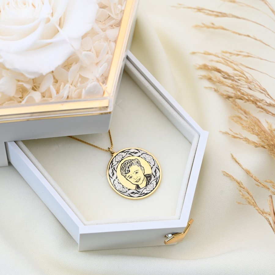 سنسال تفصيل فضة عيار 925 (حفر صورة شخصية ) مع طلي ذهبي
