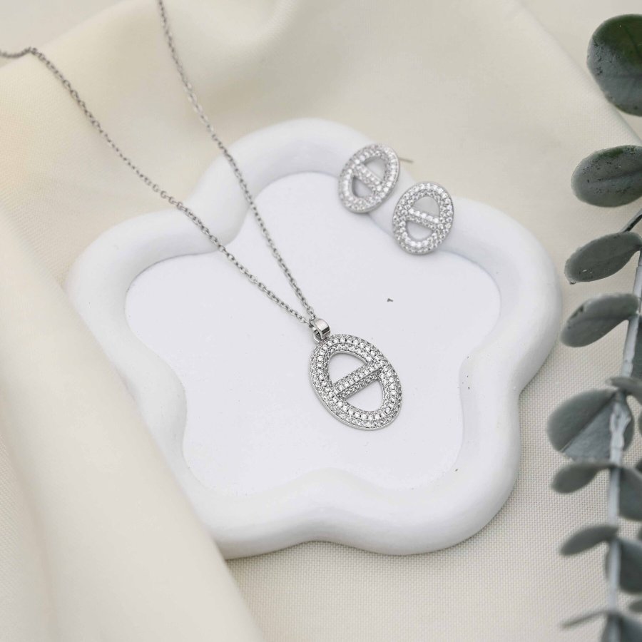 سنسال و حلق ماركة زركون شكل بيضاوي مع خط بالوسط