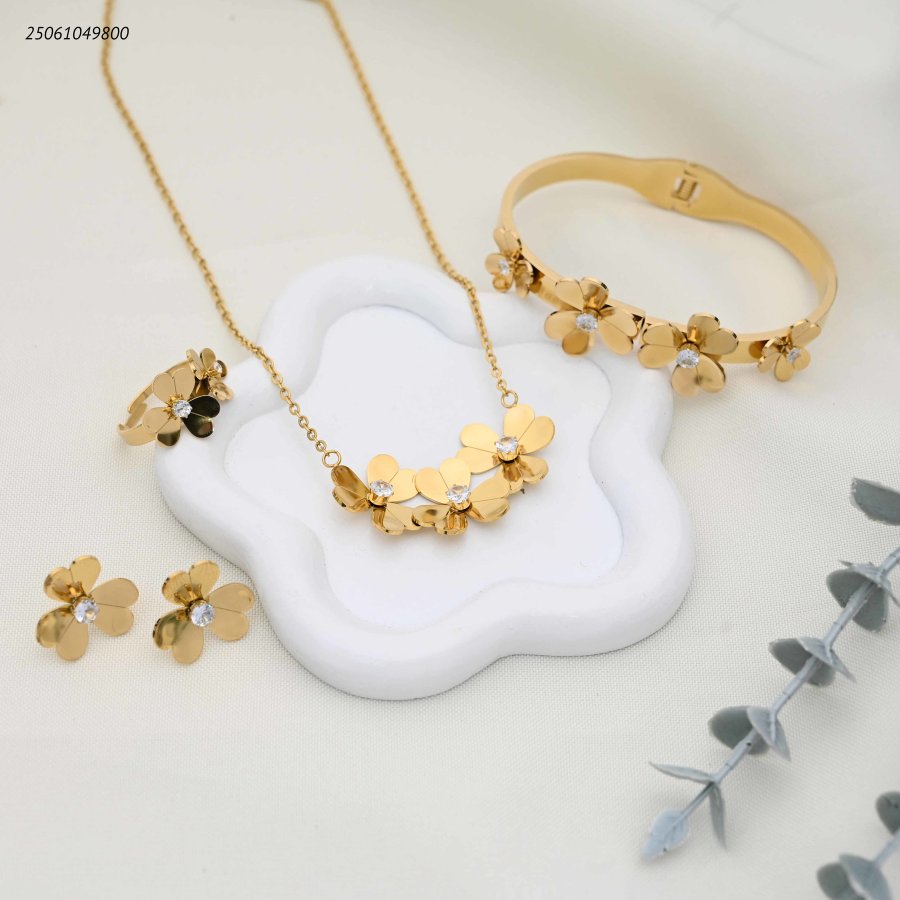 طقم وردات اسوارة و سنسال و خاتم و حلق