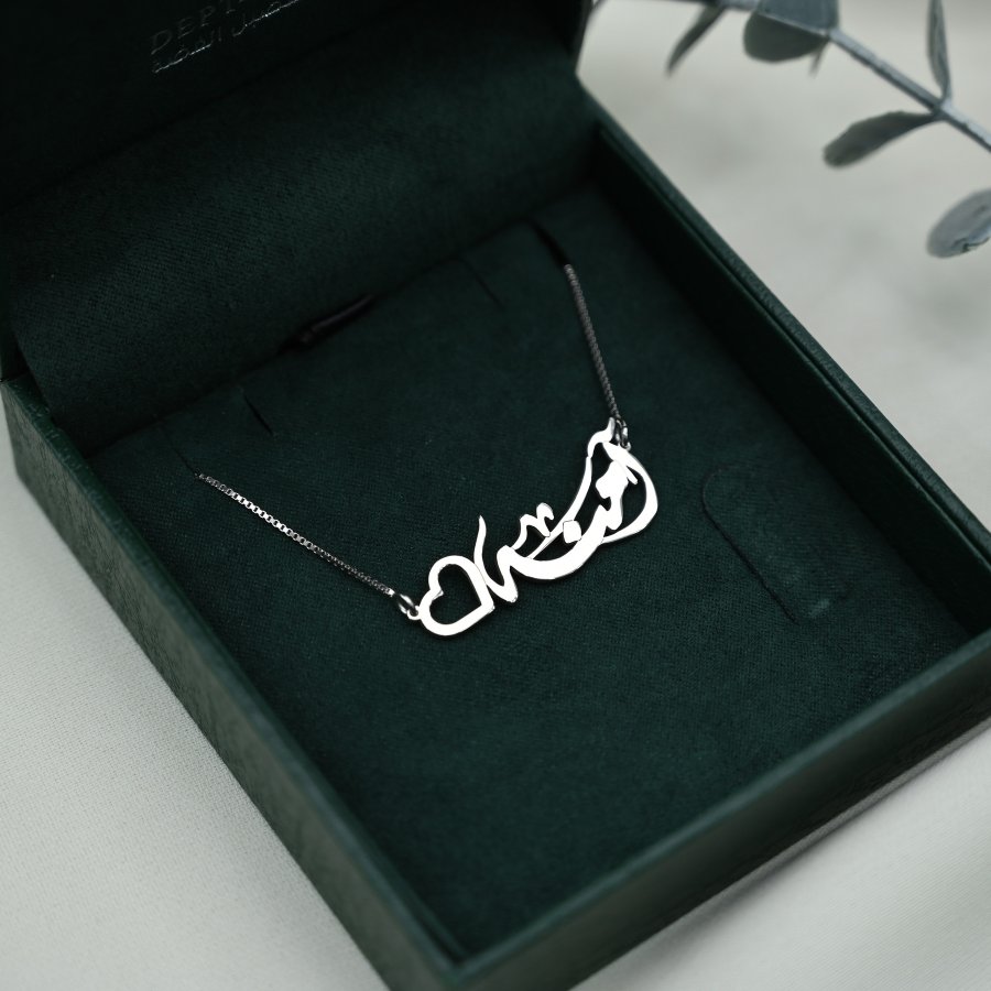 سنسال تفصيل اسم فضة 925 مع قلب مفرغ
