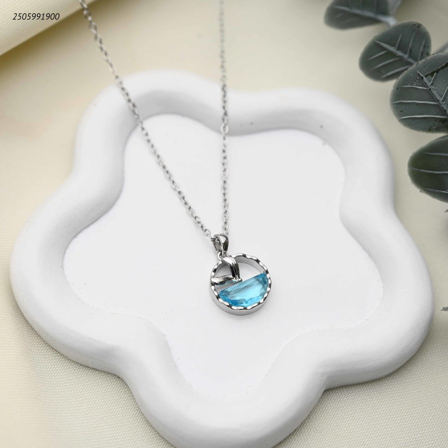 قلادة بتعليقة قارب أزرق داخل إطار دائري