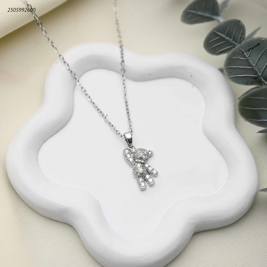 قلادة بتعليقة دب مرصع بالكامل بالزركون اللامع
