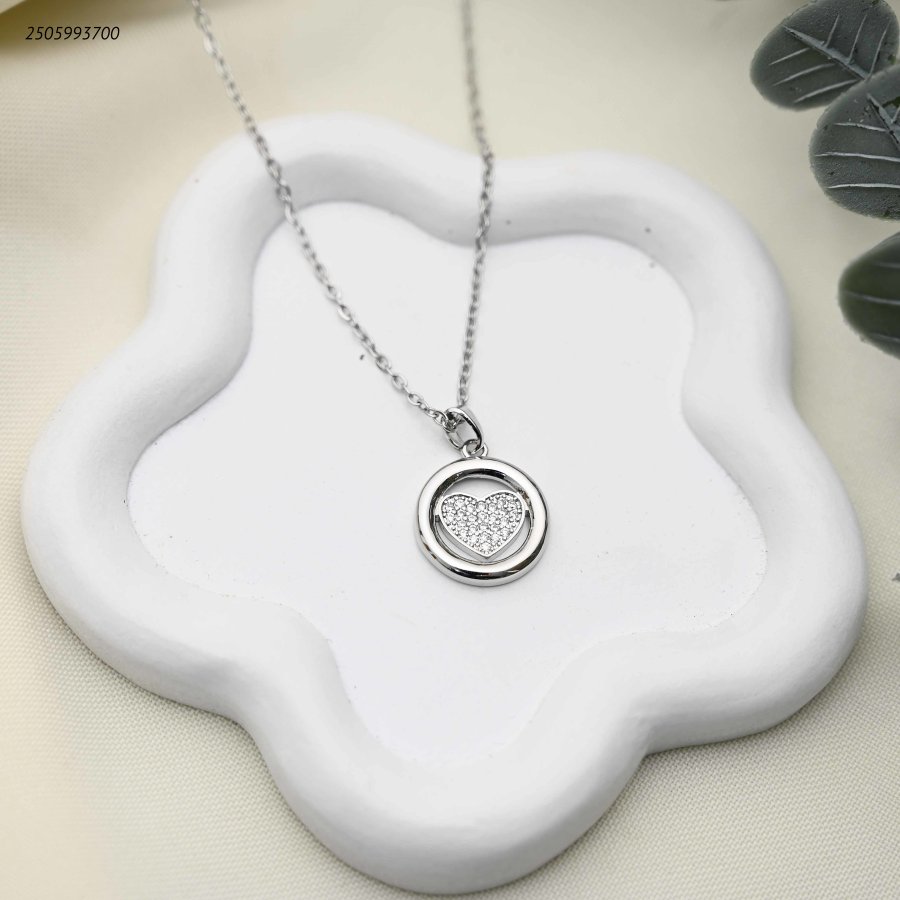 قلادة بتعليقة قلب مرصع بالزركون داخل دائرة