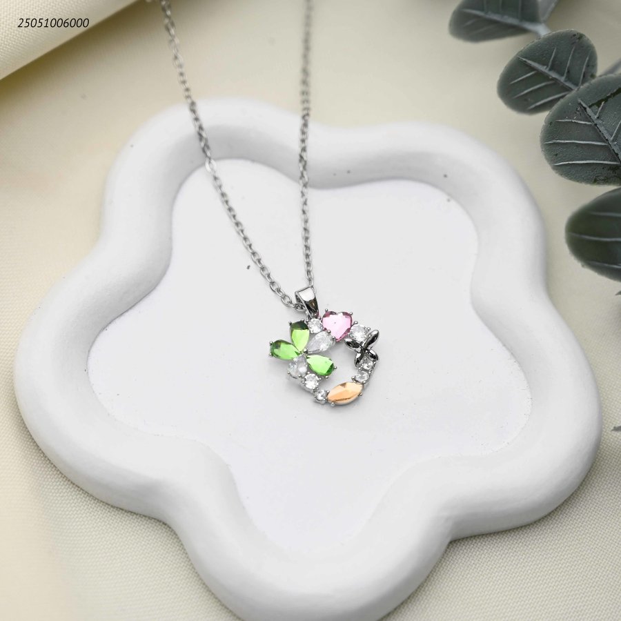قلادة بتصميم زهرة ملونة ومرصعة بأحجار الزركون.