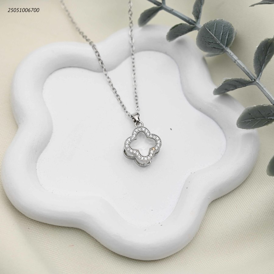قلادة أنيقة بتصميم زهرة البرسيم وزركون أزرق لامع.