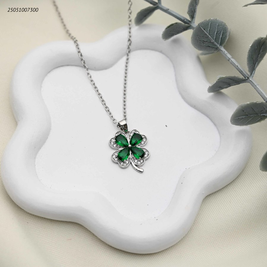 قلادة زهرة البرسيم بالزركون الأخضر والأبيض.
