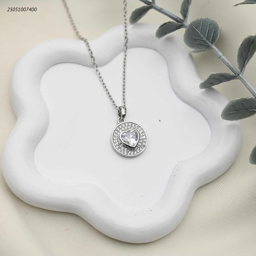قلادة بتصميم دائري وقلب مرصعة بالزركون اللامع.