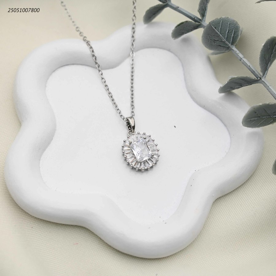 سنسال بيضاوي زركونة كبيرة مع اطار زركون صغير