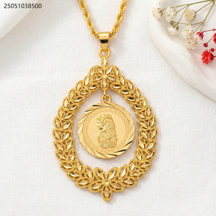 عقد الدمعة الكلاسيكي بإطار الغار وتعليقة بنقش إغريقي