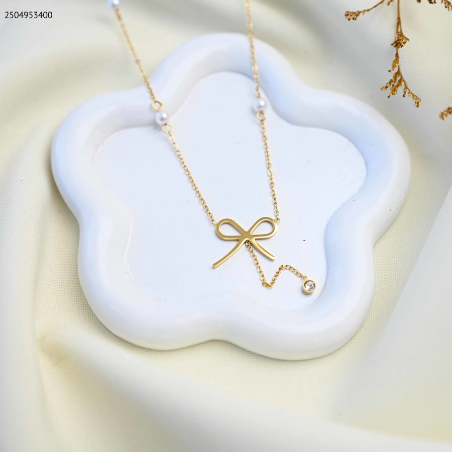 سنسال صغير على شكل فيونكة، يتدلى منها زركونة صغيره.