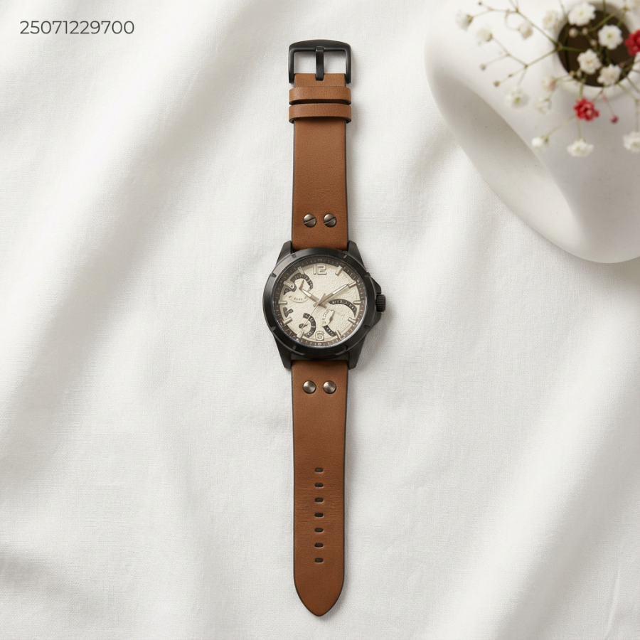 ساعة رجالي مع ذراع جلد