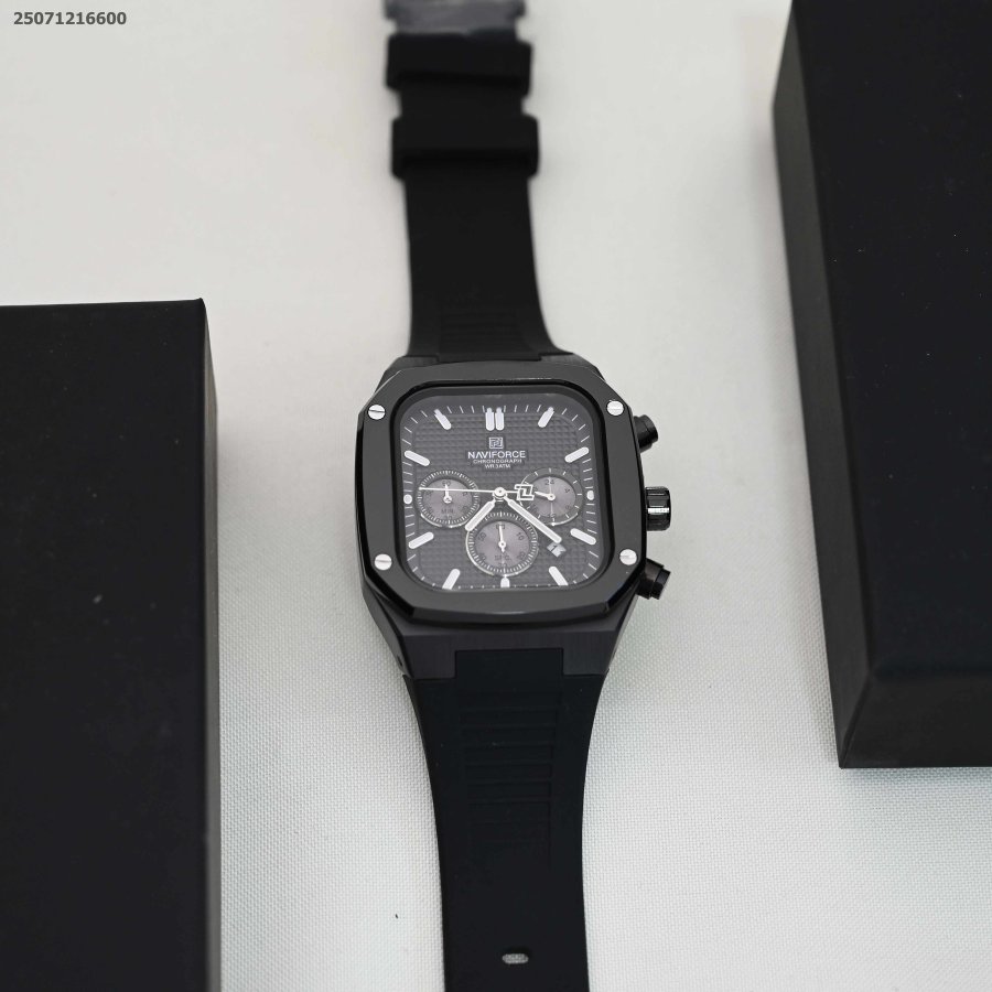 ساعة رجالي أنيقة مربعة الشكل مع ذراع مطاطي
