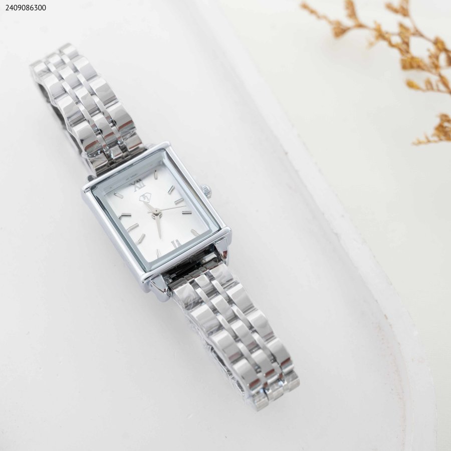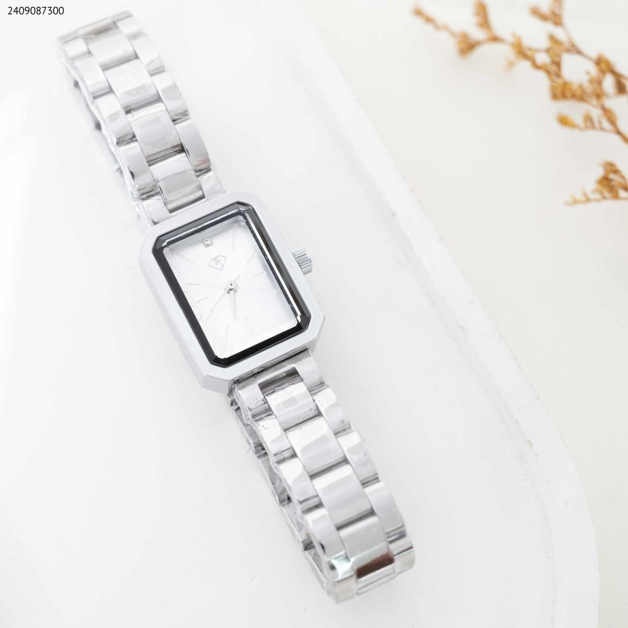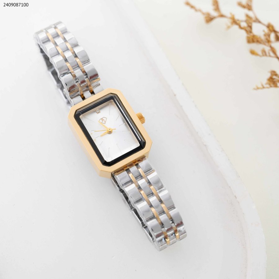 ساعة نسائية بتصميم مستطيل أنيق تأتي مع حزام معدني متين يضمن راحة وملاءمة مثالية