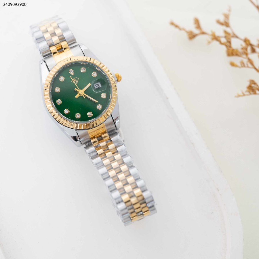 ساعة نسائية بتصميم دائري أنيق مرصعة بأحجار الزركون اللامعة التي تضفي بريقًا مع بحزام معدني مكفول اللون، مما يضمن لك تألقًا يدوم طويلاً دون تغيير اللون