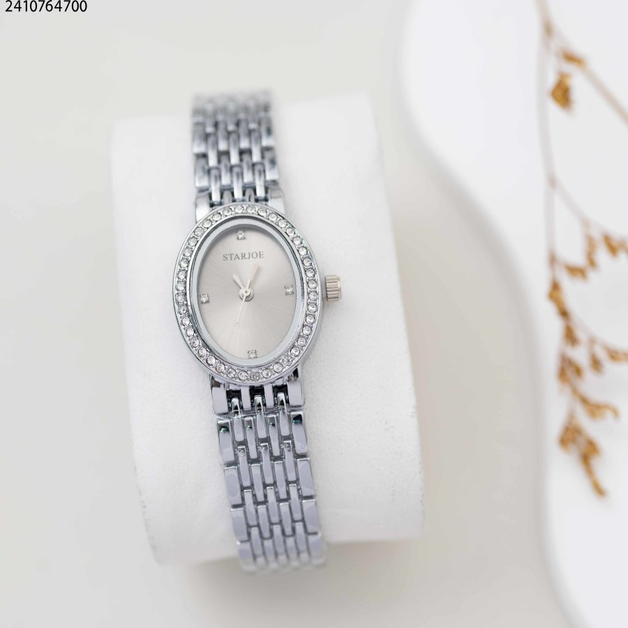 ساعة نسائية بيضاوي زركون بدون ارقام