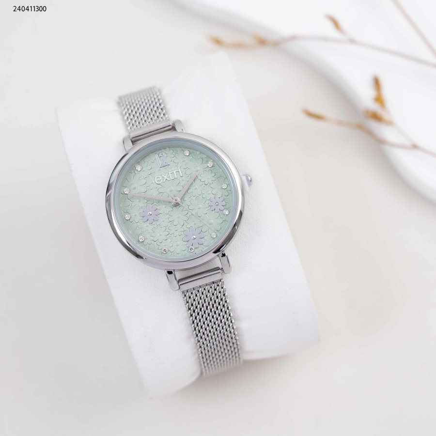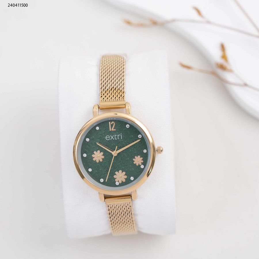 ساعة نسائية دائرية مع وردات