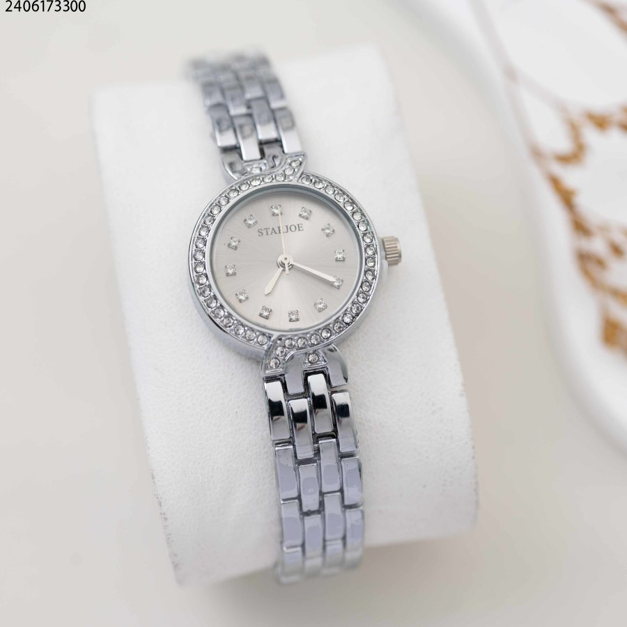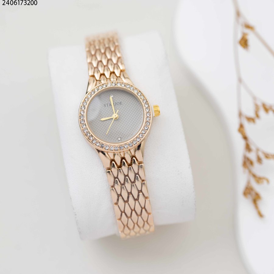 ساعة نسائية دائرية مع زركون وحزام شبكي