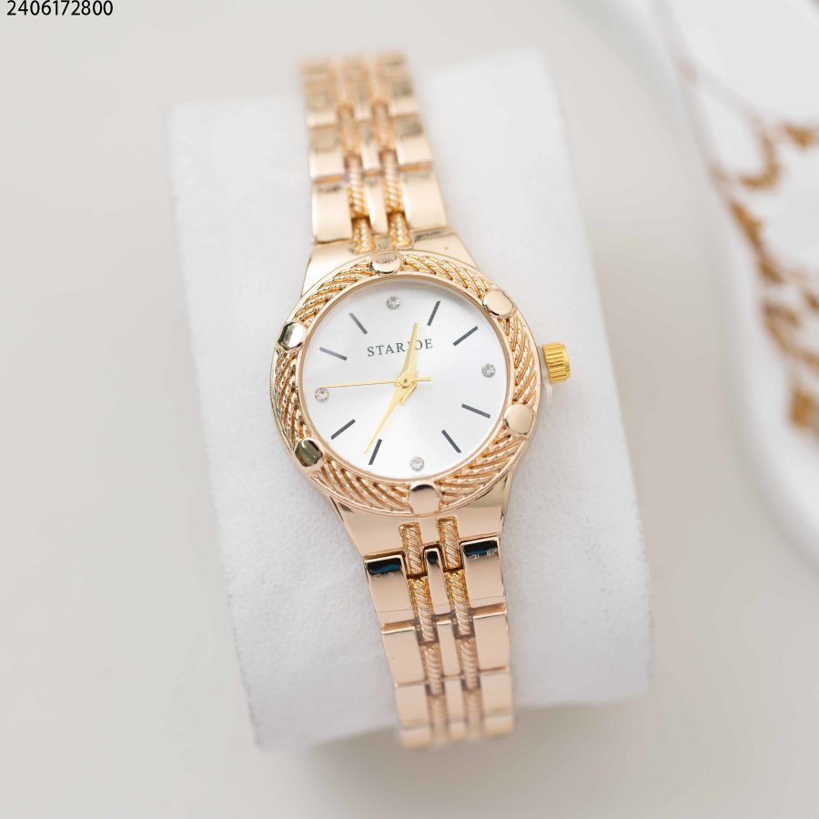 ساعة نسائية دائرية مع زركون وحزام شبكي