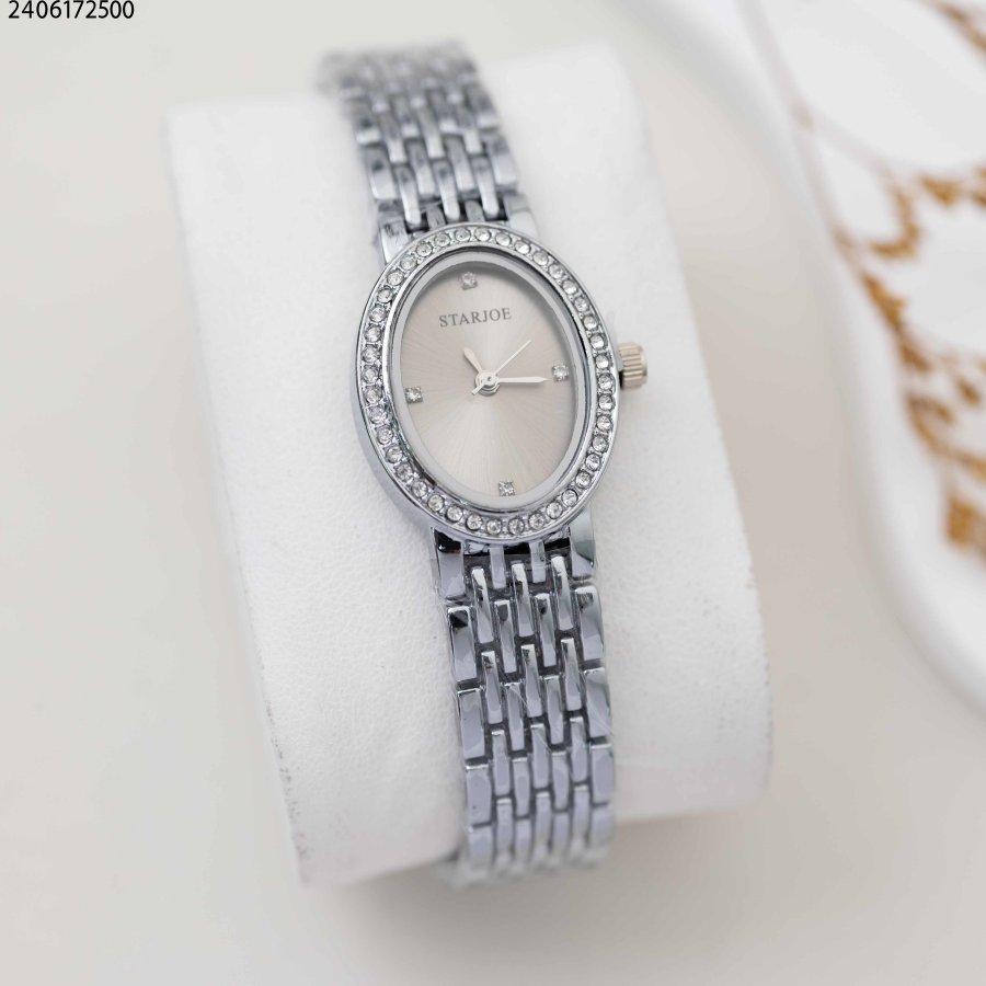 ساعة نسائية بيضاوية الشكل مع حزام معدني