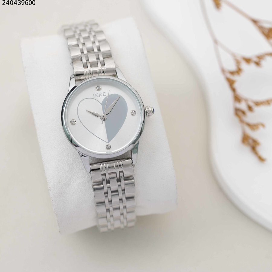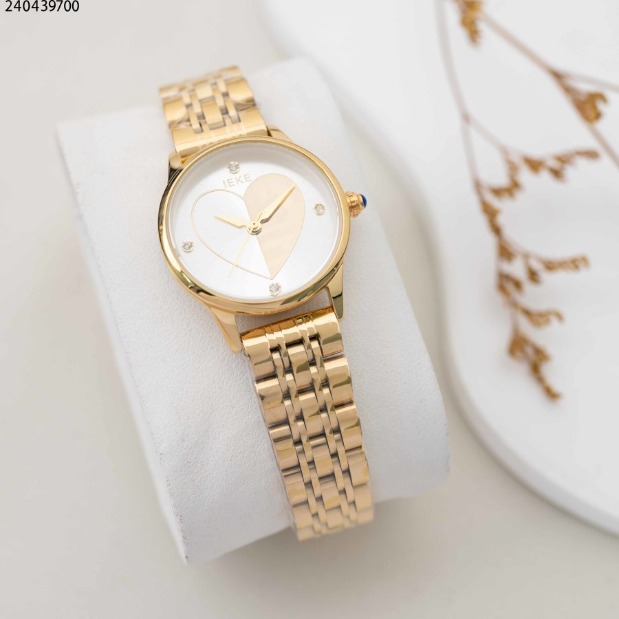 ساعة نسائية دائرية مع خلفية قلب و حزام معدني