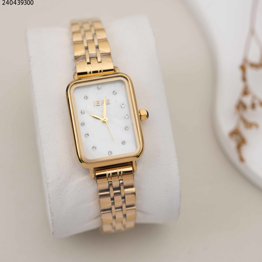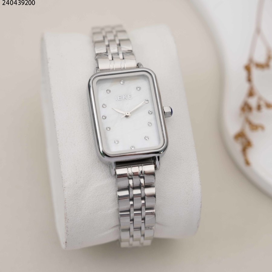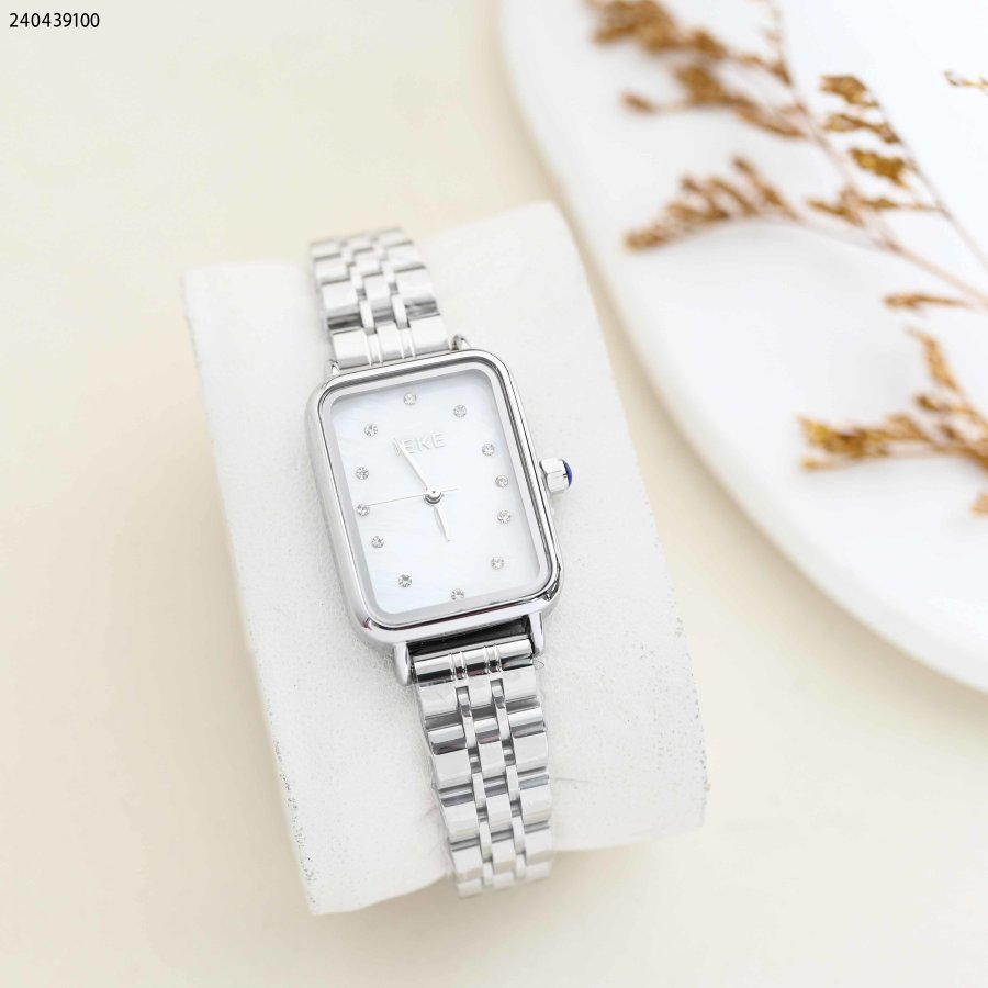 ساعة نسائية مستطيلة مع حزام معدني