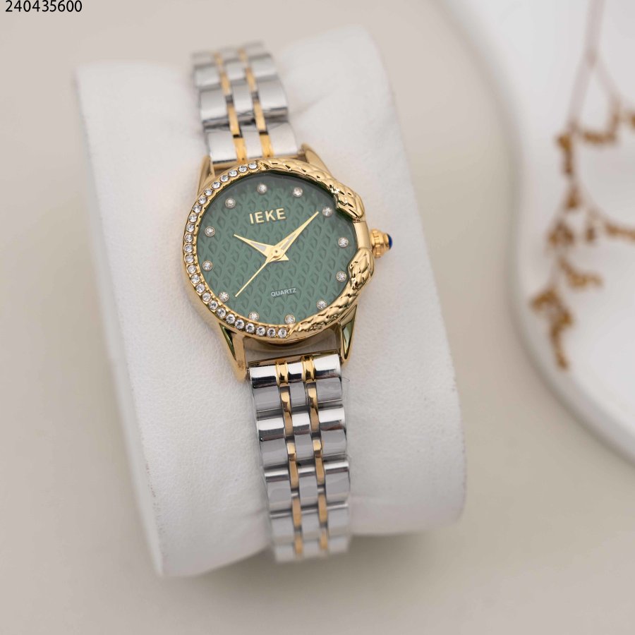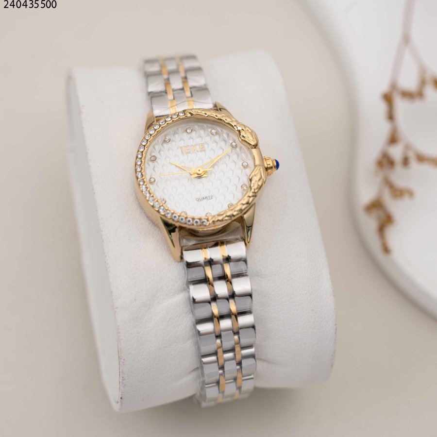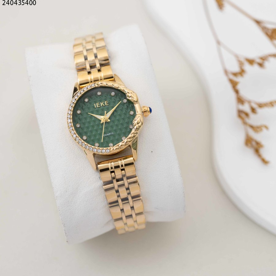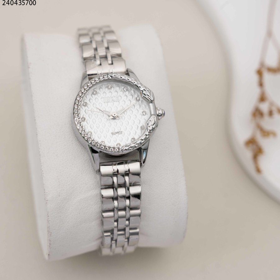 ساعة نسائية دائرية مع زركون وحزام معدني