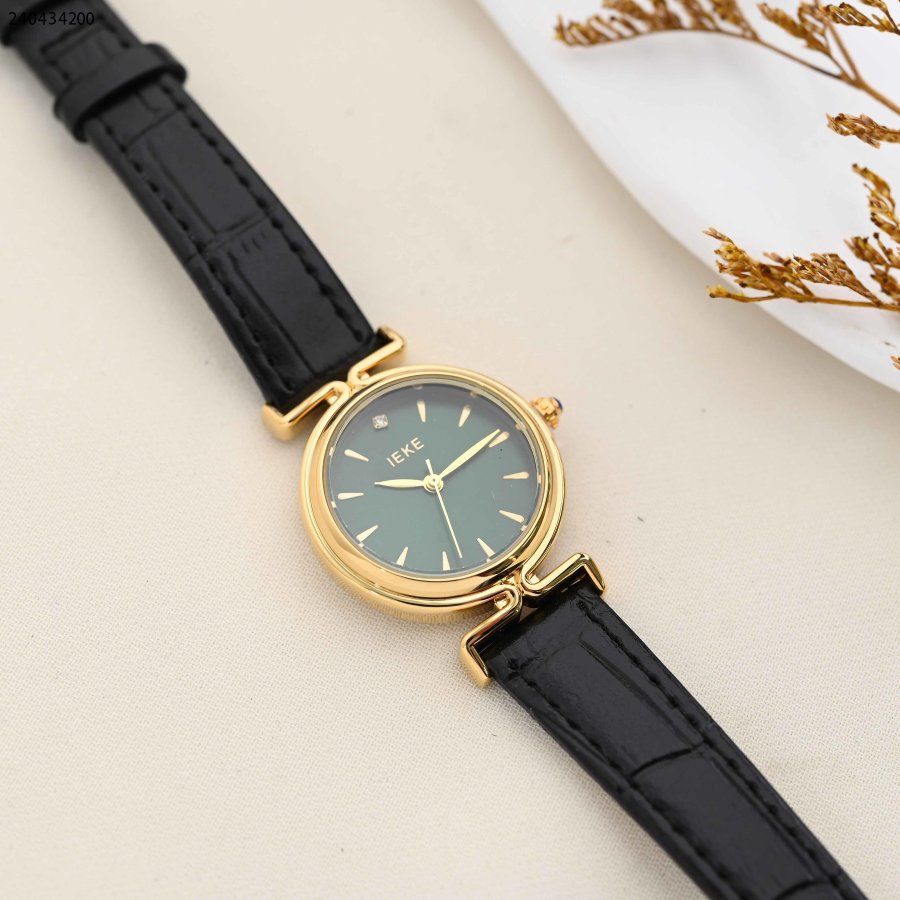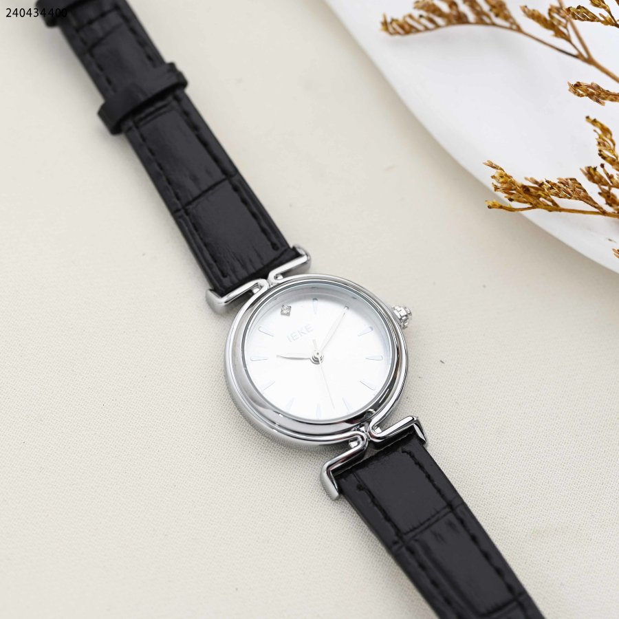 ساعة نسائية دائرية مع حزام جلدي