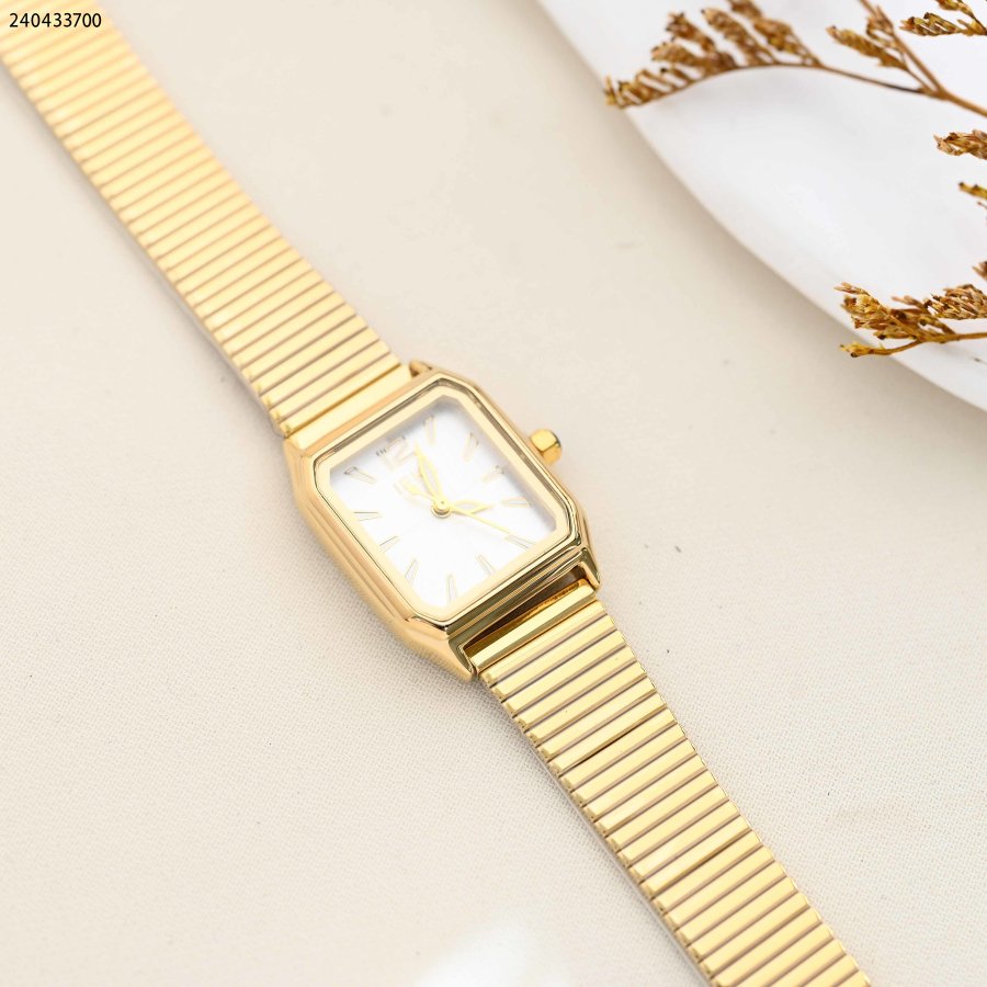 ساعة نسائية مربعة مع حزام معدني