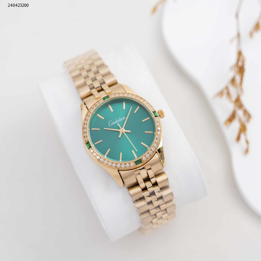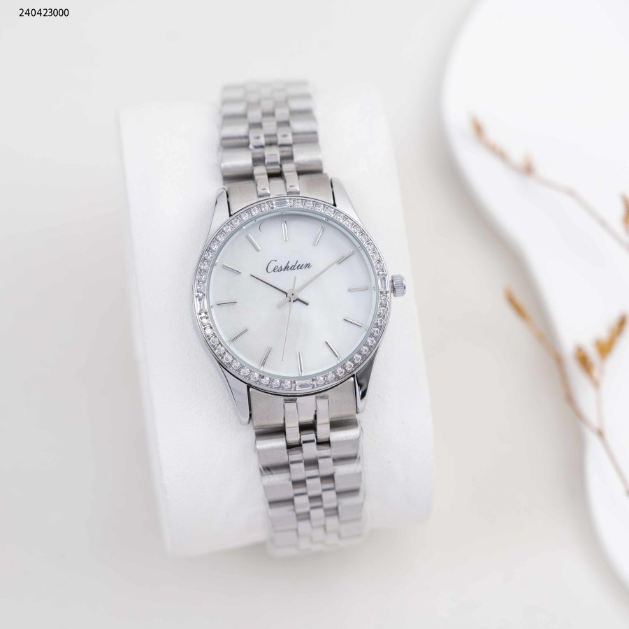 ساعة نسائية دائرية مع زركون وحزام معدني