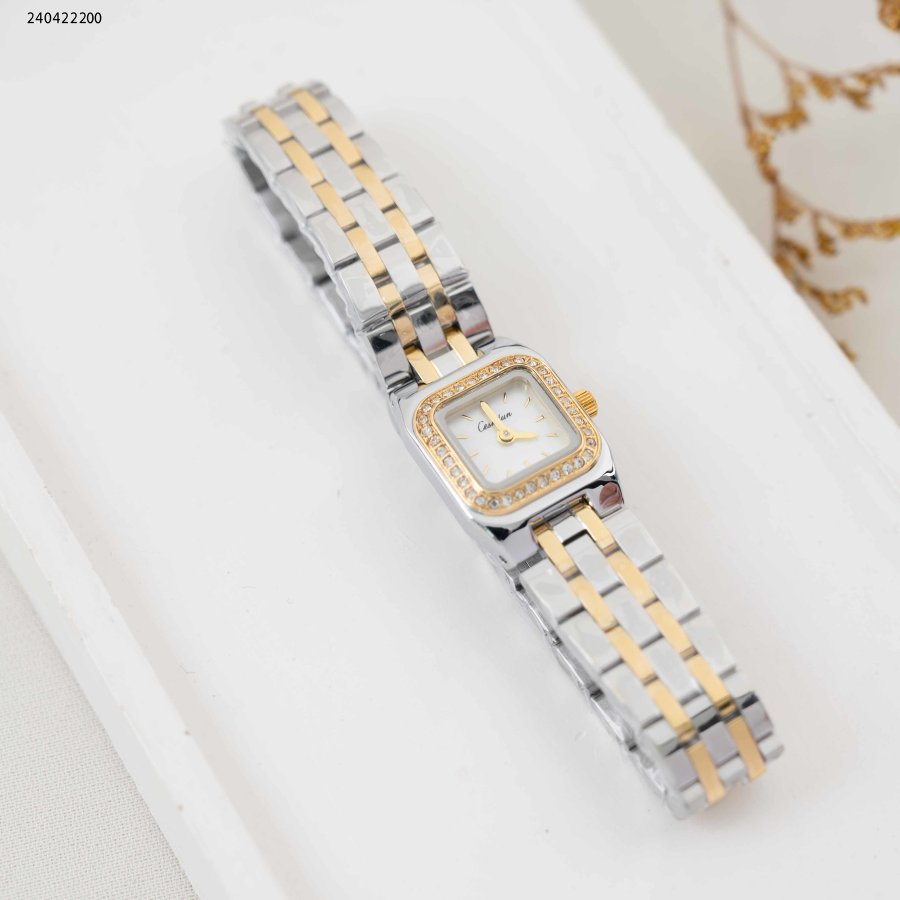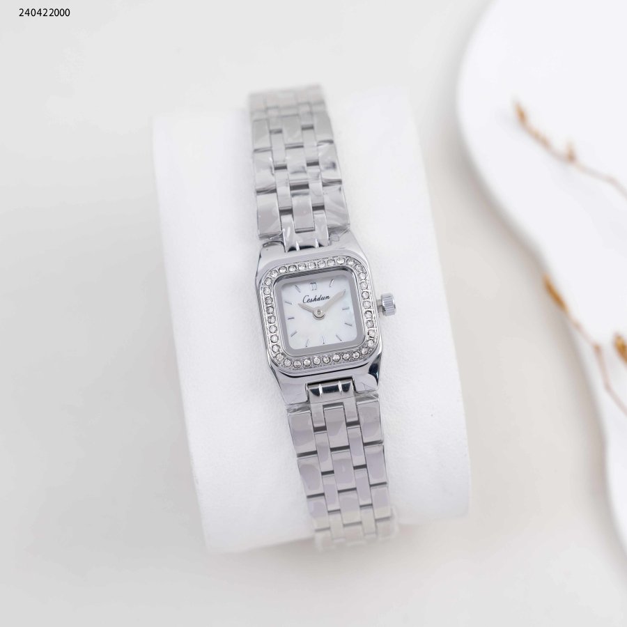 ساعة نسائية مربعة مع زركون و حزام معدني