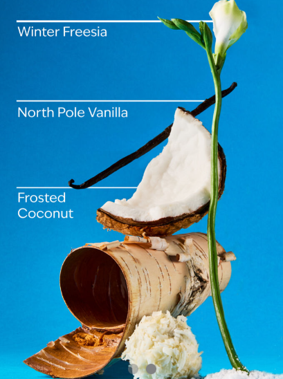 الرائحة: مزيج حلو وكريمي من جوز الهند المثلج، الفانيليا، والفريزيا الشتوية.
