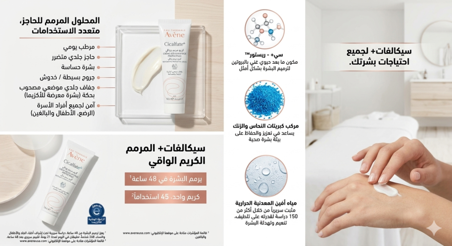 الميزات: يحتوي على مياه أفين الحرارية لتهدئة البشرة، ومكونات لتجديد الجلد وحمايته من العوامل الخارجية.