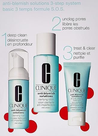 مجموعة كلينيك المضادة للشوائب (Clinique Anti-Blemish Solutions)، وهي نظام متكامل من ثلاث خطوات مصمم خصيصاً لعلاج حب الشباب، التحكم في الإفرازات الدهنية الزائدة، ومنع ظهور البثور في المستقبل. تعتمد هذه المجموعة على مكونات فعالة مثل حمض الساليسيليك (Salicylic Acid) الذي يعمل على تقشير البشرة وتنظيف المسام بعمق.