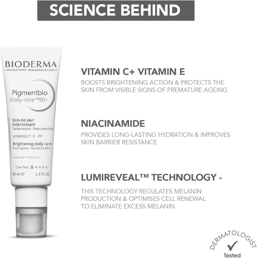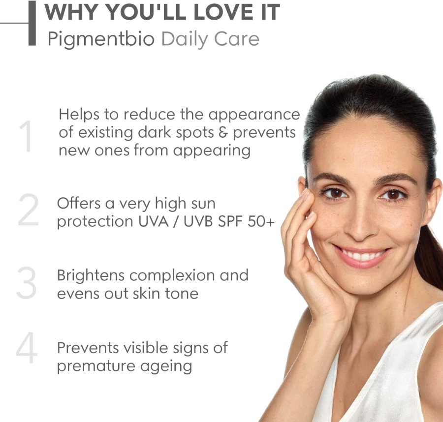 كريم بيوديرما بيجمنت بيو ديلي كير (Bioderma Pigmentbio Daily Care)، وهو كريم نهاري مصمم خصيصاً للعناية بالبشرة التي تعاني من التصبغات والبقع الداكنة.
