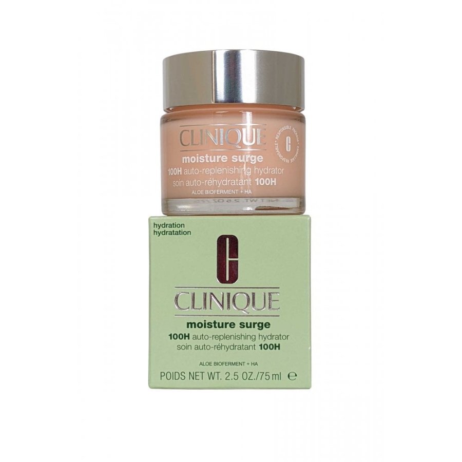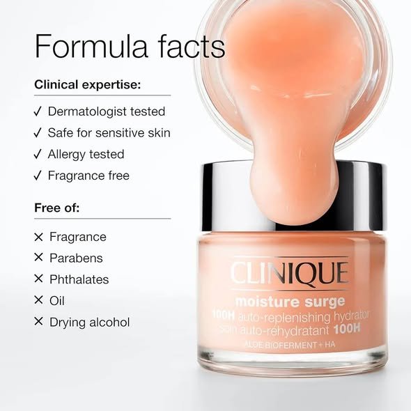 يُظهر المنتج المختار كريم مرطب كلينيك مويستشر سيرج 100H (Clinique Moisture Surge 100H Auto-Replenishing Hydrator)، وهو مرطب جل-كريم متطور يوفر ترطيباً عميقاً يدوم طويلاً.