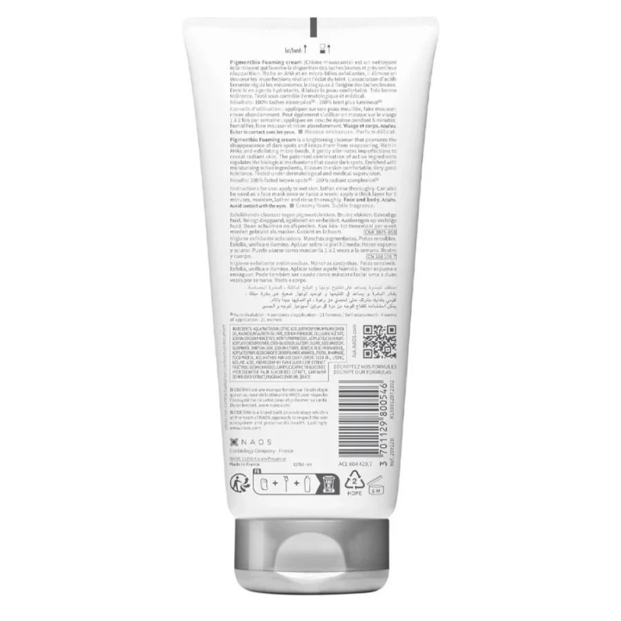هذا المزيج الحاصل على براءة اختراع من المكونات النشطة الموجودة في Pigmentbio Foaming Cream يكمله مزيج من المكونات النشطة التكميلية