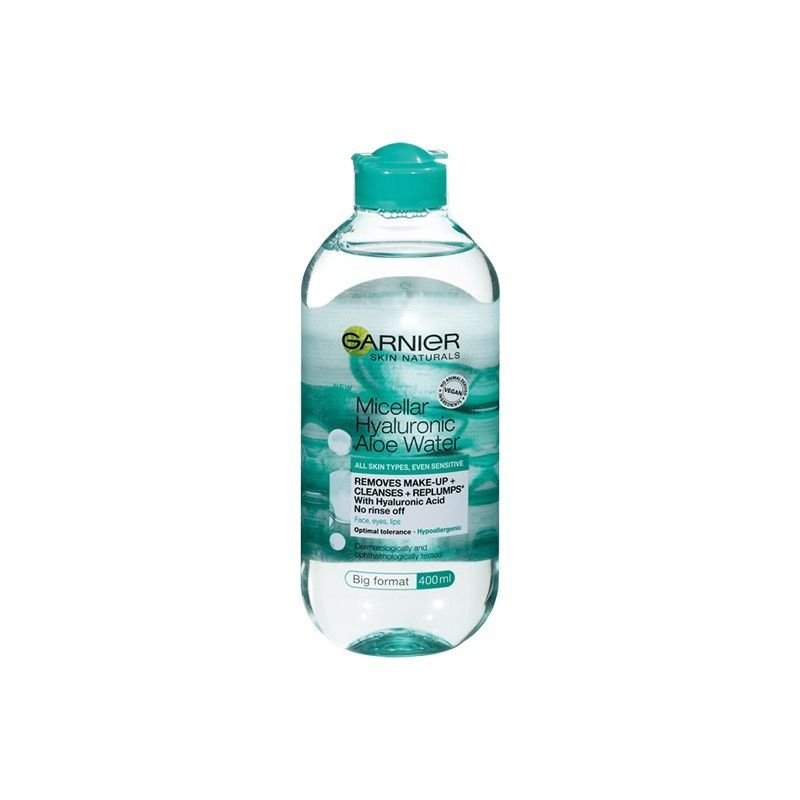 هذا المنتج هو ماء ميسيلار غارنييه سكين أكتيف (Garnier SkinActive) المعزز بـ حمض الهيالورونيك والصبار (Aloe Vera)، وهو منظف "الكل في واحد" مصمم لتنظيف البشرة وإزالة المكياج مع ترطيبها.