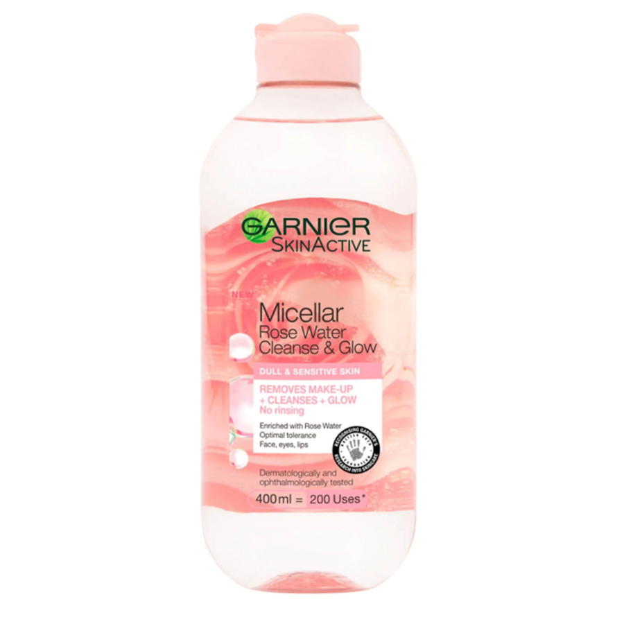 جارنيه ميسيلار سكين أكتيف بماء الورد، وهو منظف "الكل في واحد" مصمم خصيصاً للبشرة الباهتة والحساسة ليعيد إليها إشراقها ونضارتها
