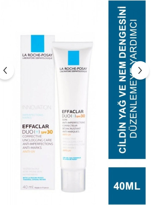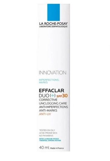 هذا المنتج هو كريم لاروش بوزيه إيفاكلار ديو (+) SPF30، وهو مرطب مخصص للعناية بالبشرة الدهنية والمعرضة لحب الشباب، حيث يجمع بين علاج العيوب والحماية من الشمس في خطوة واحدة.