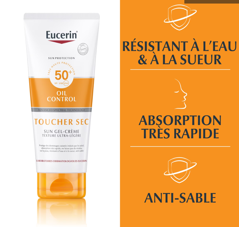 يعتبر المنتج الموضح في الصورة هو Eucerin Sun Gel-Cream Dry Touch SPF 30 بحجم 200 مل. وهو واقي شمس للجسم مصمم خصيصاً للبشرة الحساسة والدهنية والمعرضة لحب الشباب، حيث يتميز بتقنية "Oil Control" التي تساعد في التحكم بإفراز الدهون وتقليل اللمعان.