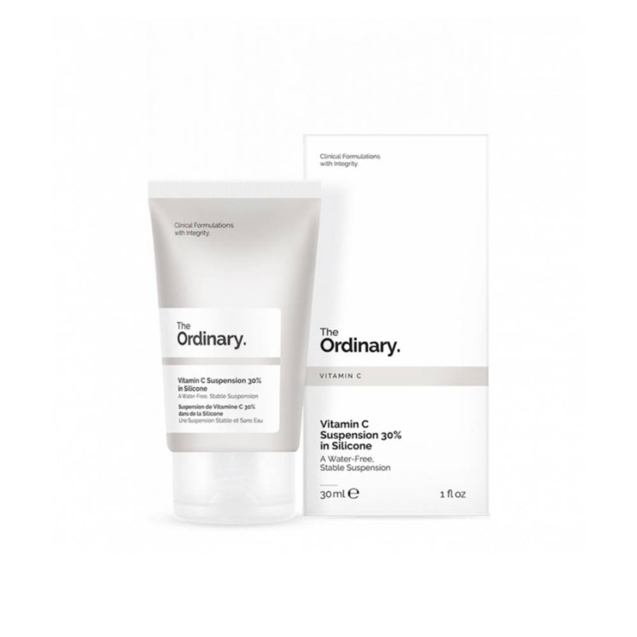 منتج The Ordinary Vitamin C Suspension 30% in Silicone (أورديناري فيتامين سي معلق 30% في السيليكون)، وهو كريم بتركيز عالٍ من فيتامين سي النقي (حمض الأسكوربيك) مصمم لتفتيح البشرة ومحاربة علامات التقدم في السن.
