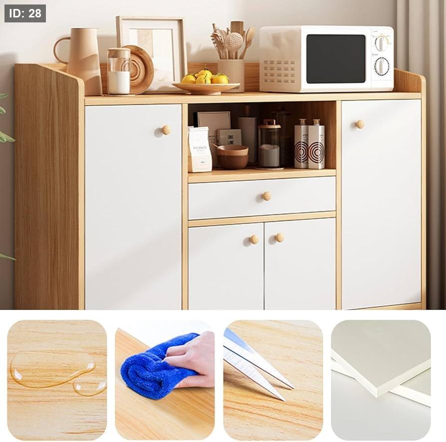 خزانة تخزين خشبية عصرية متعددة الاستخدامات، مصممة لتناسب المطبخ أو غرفة الطعام أو غرفة المعيش.