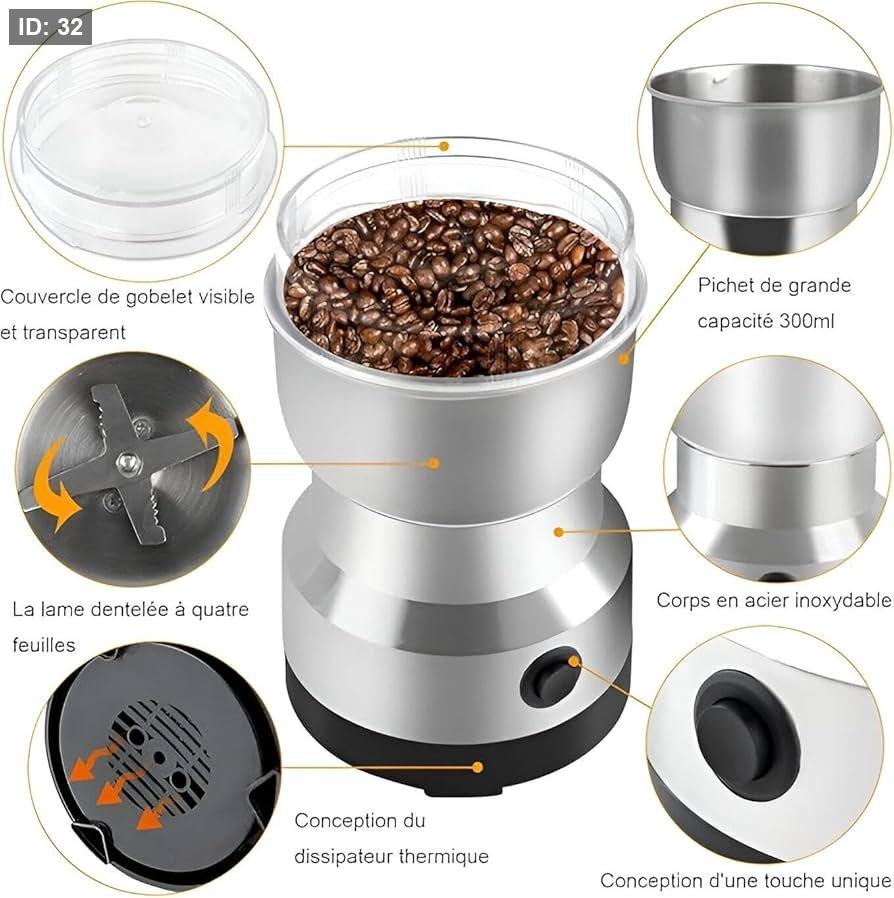 الوظائف: مصممة لطحن مجموعة متنوعة من المكونات بكفاءة وسرعة، بما في ذلك القهوة، الهيل، المكسرات، البهارات، والبذور.
