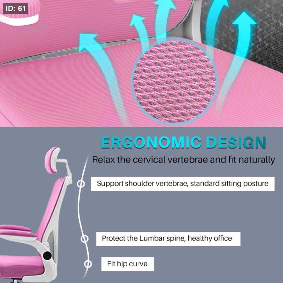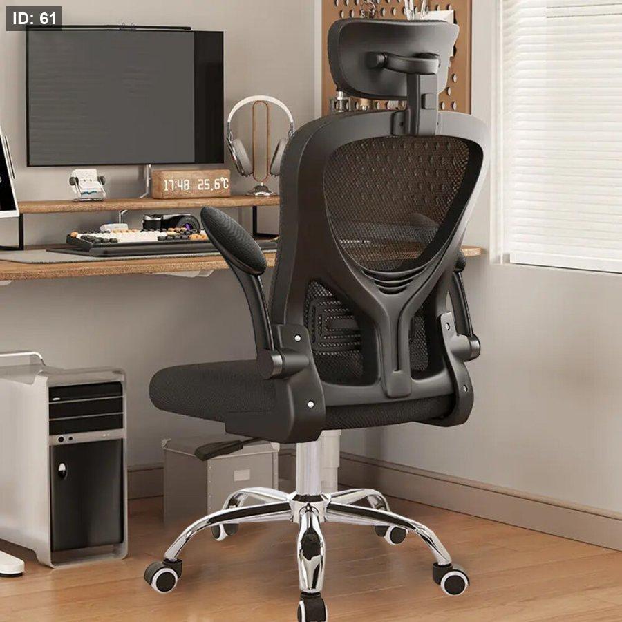 كرسي مكتب مريح (Ergonomic Office Chair) مصمم لدعم الجسم أثناء ساعات العمل أو الدراسة الطويلة. يتميز الكرسي بهيكل متين وظهر مصنوع من قماش شبكي (Mesh) يسمح بالتهوية الممتازة لمنع التعرق.